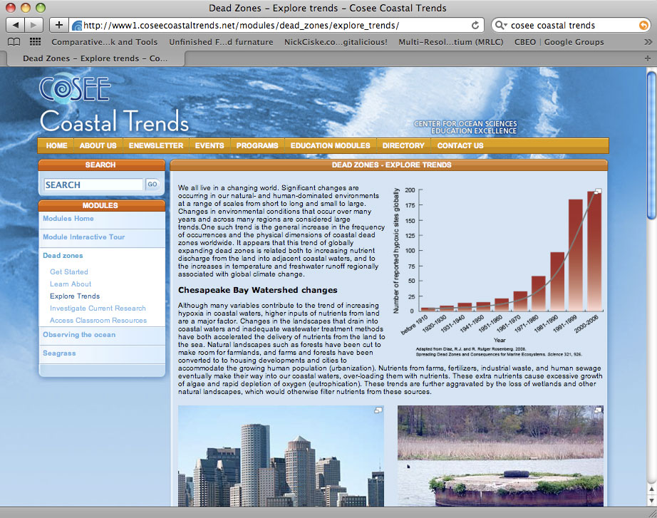The CBEO project is funded through the National Science Foundation's 2005 program for "Cyberinfrastructure for Environmental Observatories: Prototype Systems to Address Cross-Cutting Needs (CEO:P)" (#0618986), and is also closely tied with the WATer and Environmental Research Systems Network (WATERS Network). Click here for more background on the CBEO's history.